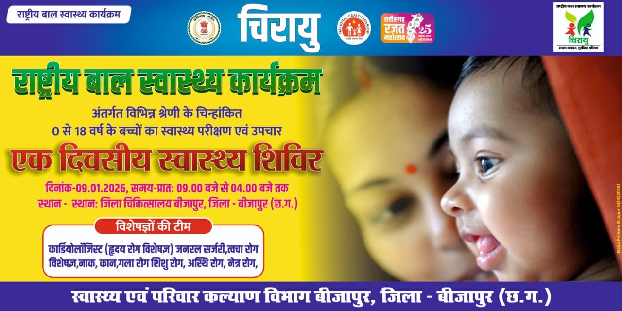 जिले के बच्चों को बेहतर स्वास्थ्य सेवाएं उपलब्ध कराने के उद्देश्य से जिला प्रशासन बीजापुर द्वारा राष्ट्रीय बाल स्वास्थ्य कार्यक्रम…