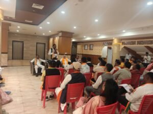 बैठक की अध्यक्षता माननीय प्रदेश अध्यक्ष श्री सत्यनारायण सिंह जी ने की, जबकि मुख्य अतिथि के रूप में माननीय क्षेत्रीय संगठन महामंत्री श्री अजय जामवाल जी उपस्थित रहे। यह बैठक संगठनात्मक दृष्टि से महत्वपूर्ण मानी जा रही है, जिसमें संगठन की भावी दिशा, कार्यशैली एवं जिम्मेदारियों को लेकर विस्तार से चर्चा की गई।